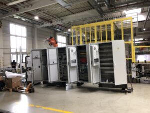 A megrendelőink számára gyártott célgépekhez és gépépítő partnereinknek is számos vezérlőszekrényt tervezünk és készítünk. A paletta széles. A kisebb, egyállomásos berendezésektől egészen a komplex gyártósorok vezérléséig terjed.